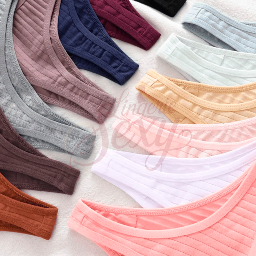 Kit 50 Calcinhas Fio Dental Caneladas | Forro 100% Algodão | Atacado